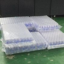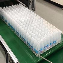 No manual operation is required. The actions of hanging bags, entering bottles and stacking are automatically completed by the machine. The output can reach 12000 bottles/hour depending on the size of bottles and the number of bags.